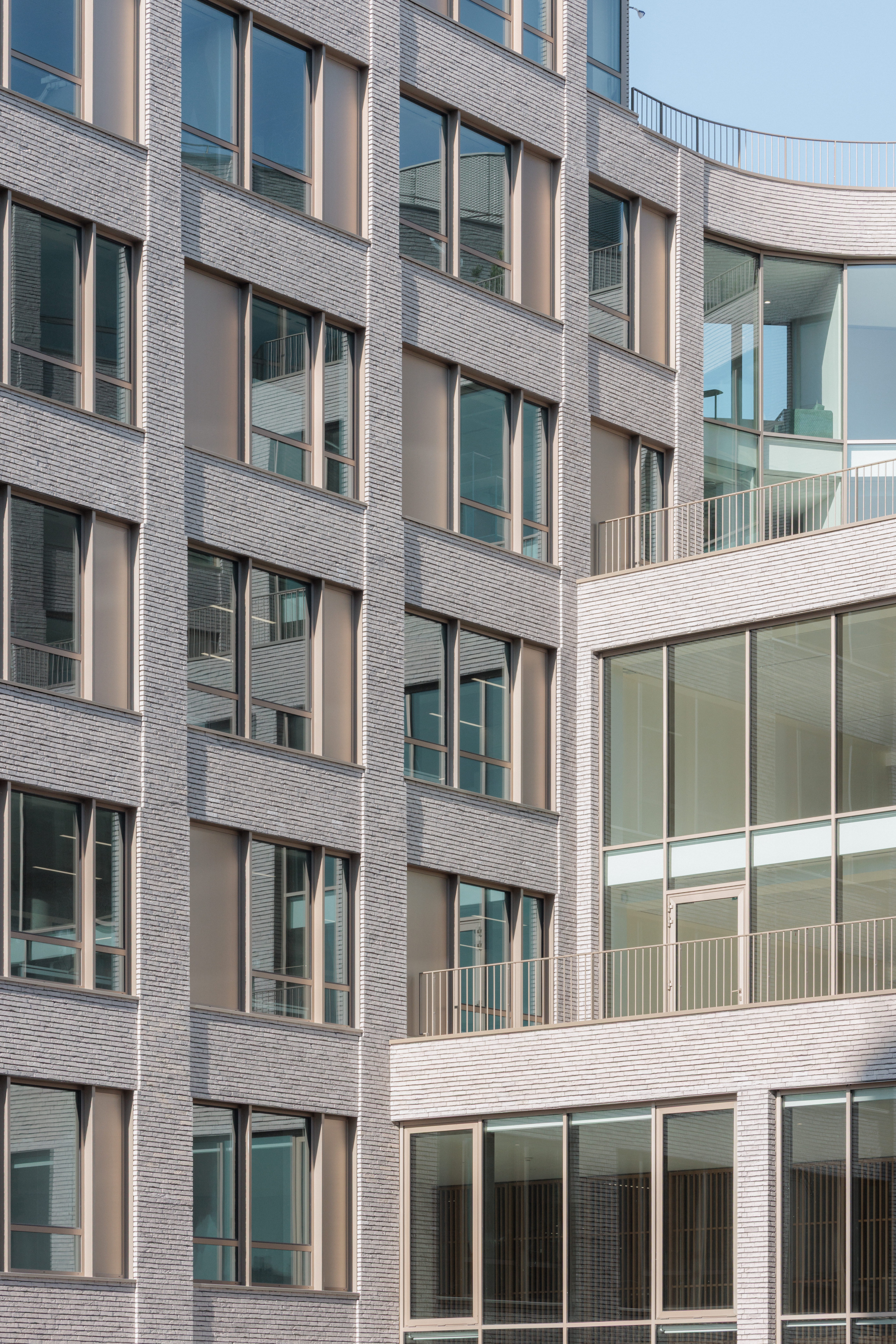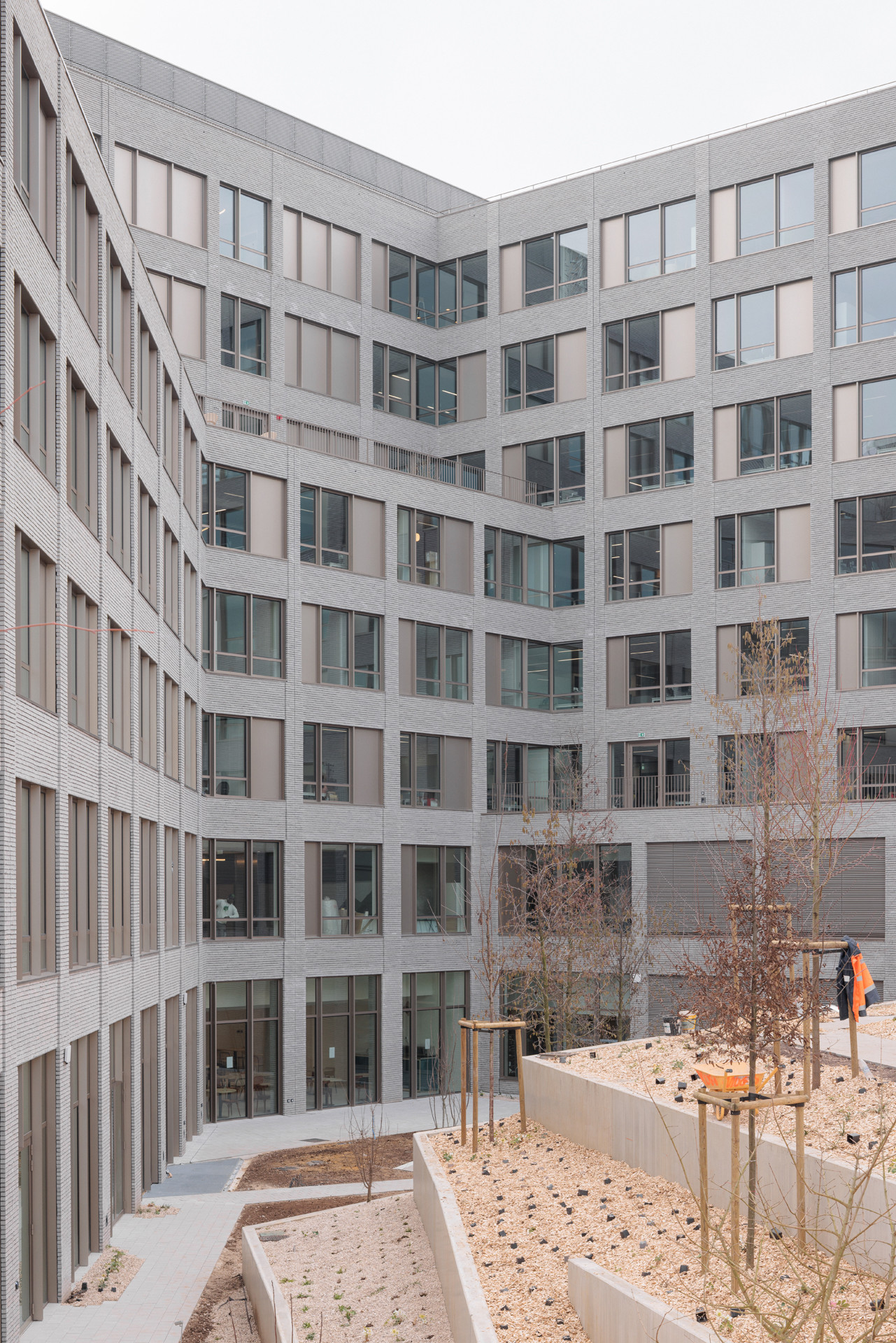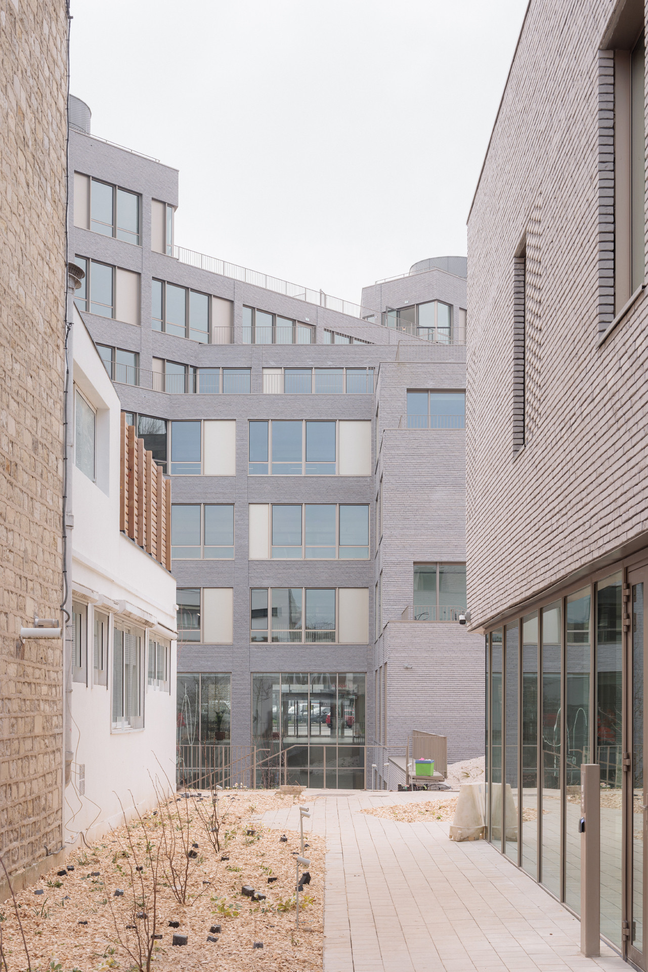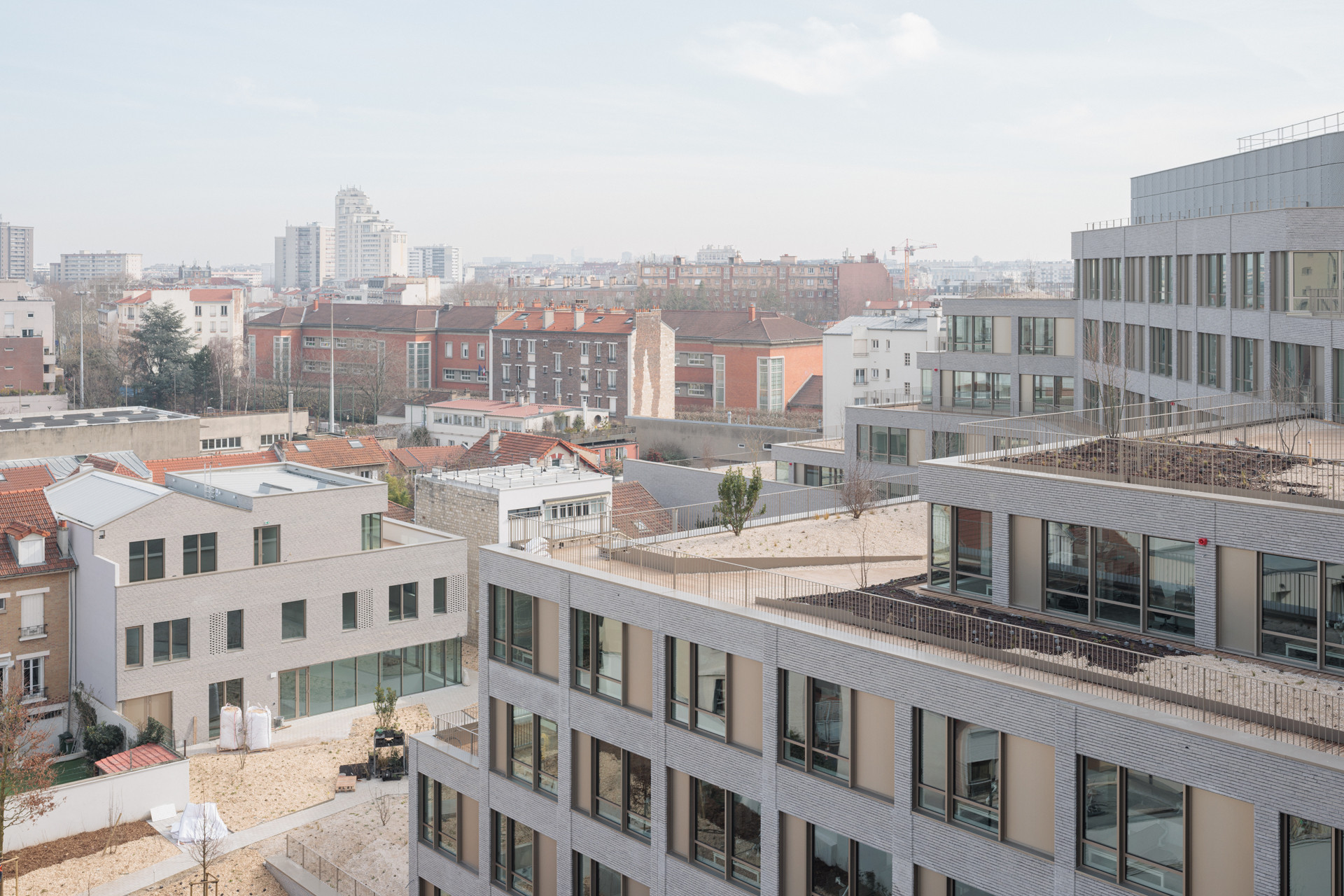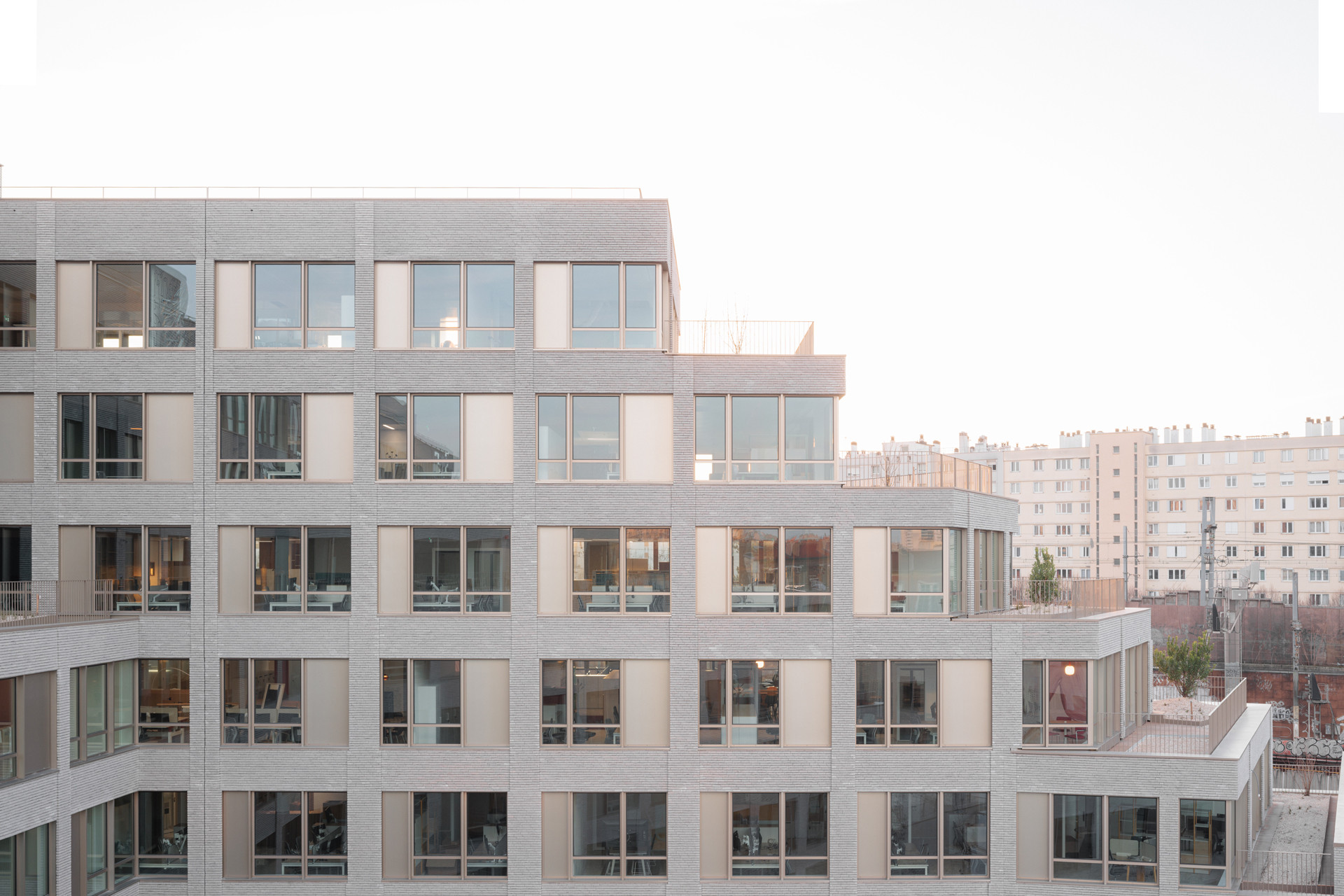 Les entreprises ont été force de proposition lorsque la complexité a mis en péril le bon ordonnancement des tâches, tel que celui-ci avait été envisagé en amont. Elles ont travaillé en étroite collaboration, dans le respect de nos prérogatives et prenant grande considération des ambitions architecturales et programmatiques du projet : toute la structure des façades a été préfabriquée sur site de façon à en accélérer la mise en œuvre. Les châssis de grandes dimensions ont été conçus pour absorber les tassements différentiels des descentes de charges en « escalier » comme l’imposent l’épannelage et les larges terrasses végétalisées, sans altération du dessin architectural. La mise en œuvre de la brique, exigeante, a aussi forcé la résilience de l'entreprise en charge : pose et repose chronométrées pour un résultat dont nous sommes fiers.
