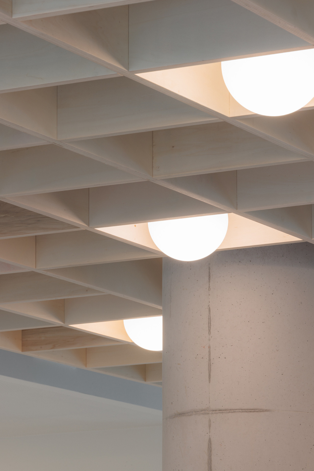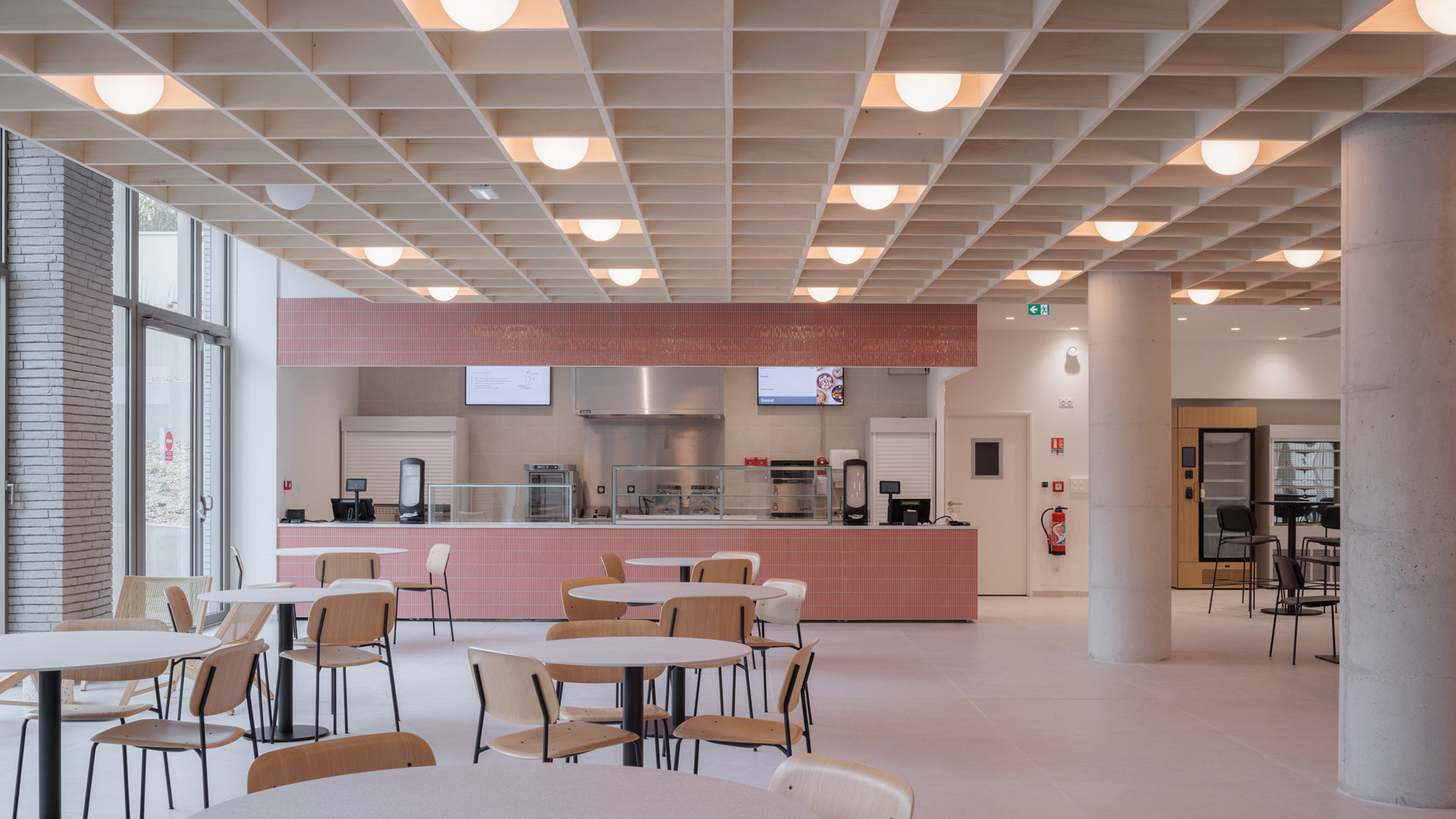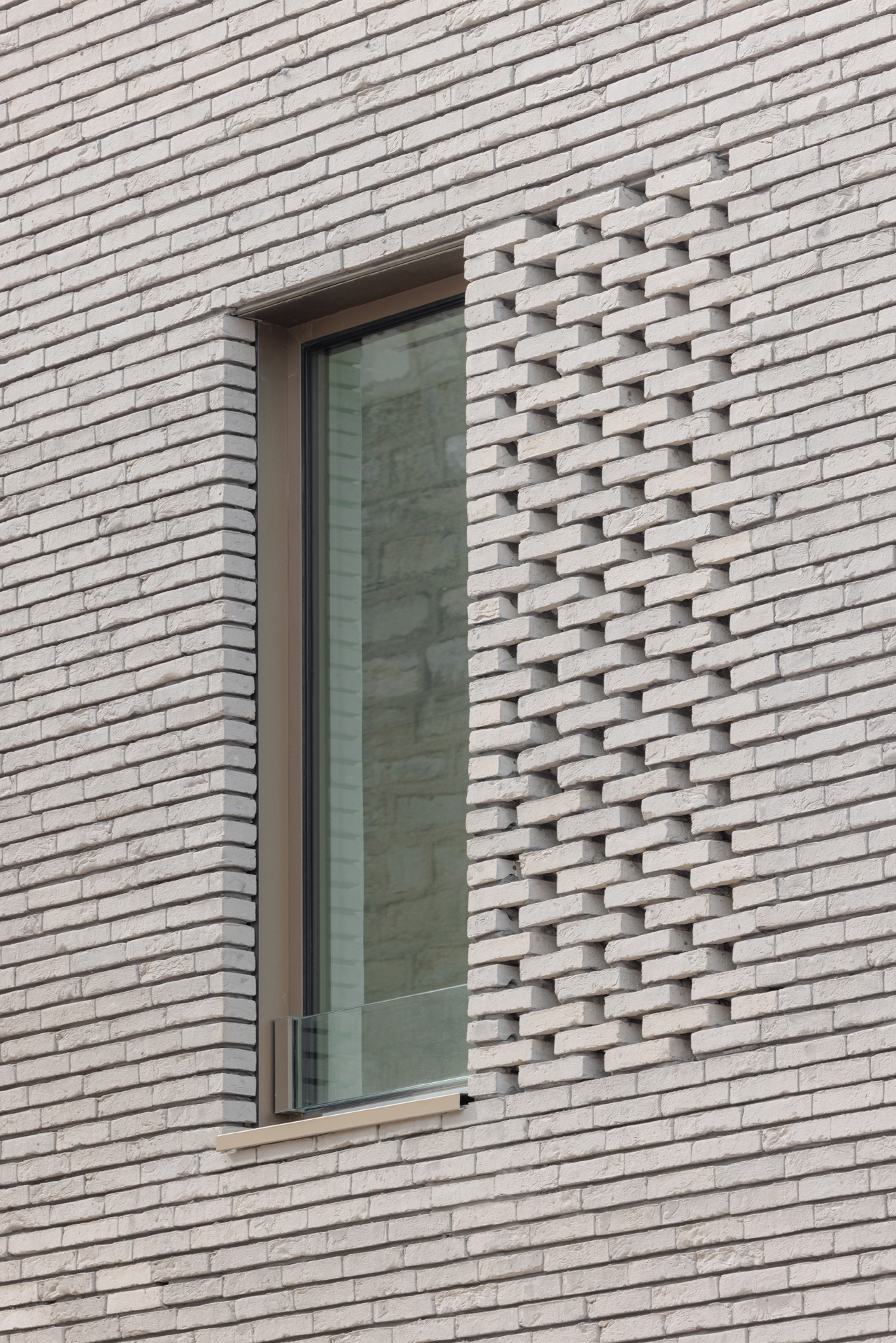 Cette opération, confiée à un confrère pour la DET, est d'ampleur suffisante pour que notre participation à la synthèse et au VISA se focalise sur certains sujets : nous nous sommes concentrés sur les mises au points complexes entre les lots du clos/couvert. Nous avons su préserver jusque dans les moindres détails chaque sujétion que le choix de la brique et son calepinage exigeaient. L’élaboration de cette synthèse s’est faite simultanément avec la mise au point Gros Œuvre, ce dès le démarrage de l’infrastructure. La structure du bâtiment présentant une grande complexité, entre hauteurs restreintes, plateaux libres, décentrement des descentes de charge, terrasse en escalier, nous avons rigoureusement maintenu les exigences géométriques du projet pour en préserver toutes les ambitions.