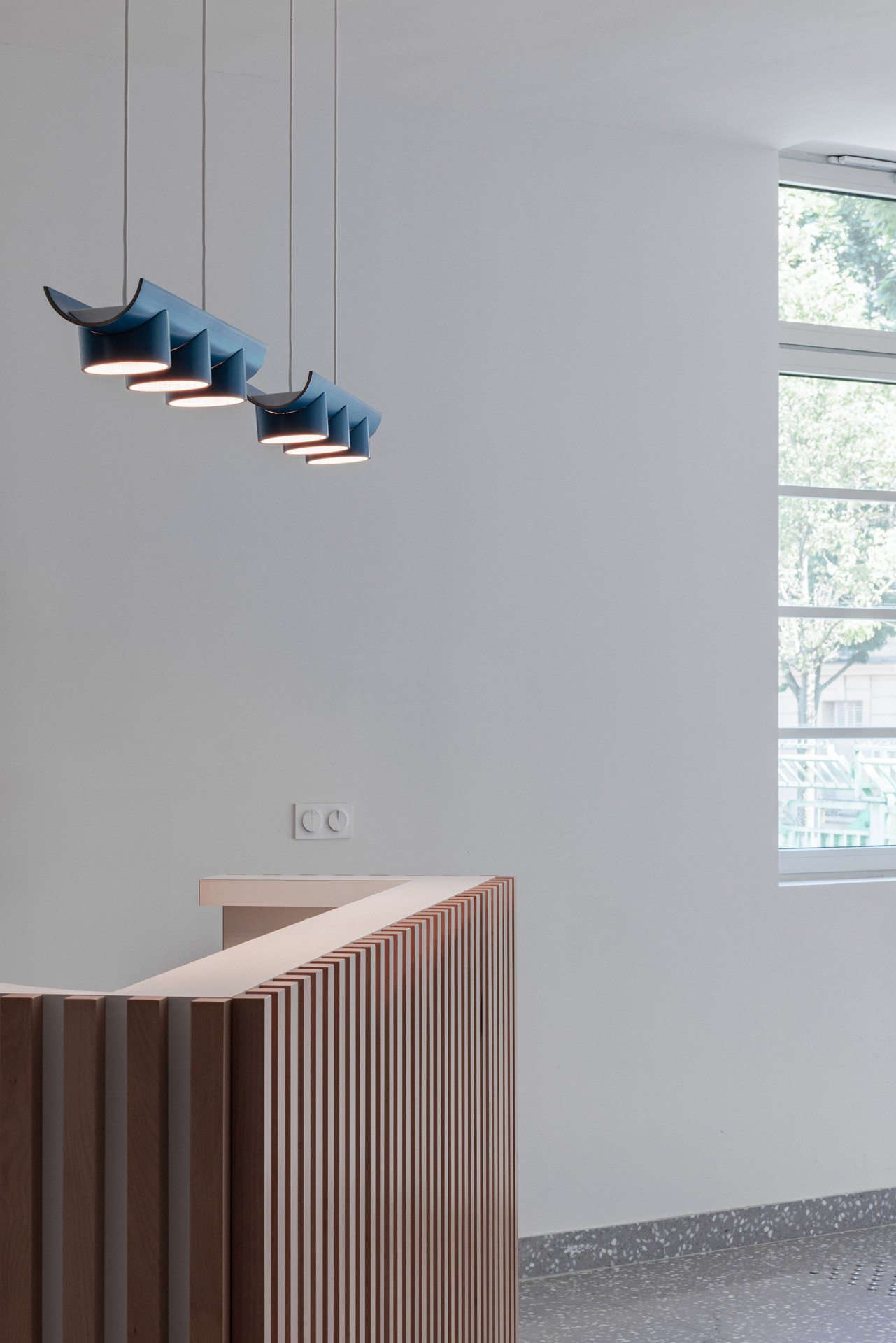 Nous avons anticipé la synthèse architecturale et technique pour que les mises en œuvre n’altèrent pas la lecture des grands volumes en blanc. L’apparente simplicité de ces plateaux et plafonds est le résultat d’un travail pointilleux de mise au point entre lots, pour lesquels rien n’a été laissé au hasard. Cet exercice s’est avéré d’autant plus compliqué que le choix de la technique apparente n’avait pas été justement anticipé par les entreprises.
