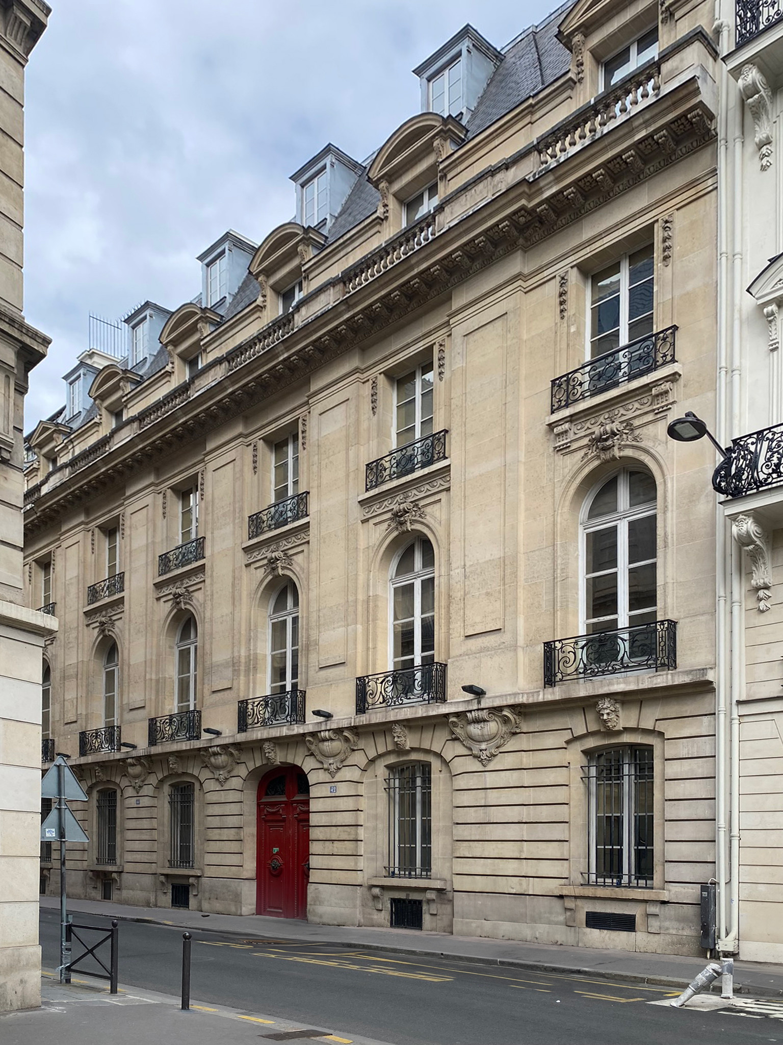 Le corps de logis principal abritait les espaces de réception et les principaux bureaux de la compagnie Schneider & Cie tandis que l’aile en retour était dédiée aux bureaux et aux ateliers. Depuis la rue d’Anjou, le rez-de-chaussée est accessible par la porte principale de type porche. L’enjeu majeur du fonctionnement du bâtiment réside dans le fait que les hauteurs de dalle à dalle de la partie rue d’Anjou et de la partie sur le jardin sont très différentes, alors que les deux parties constituent une unité fonctionnelle. De plus, les verticalités existantes sont disséminées dans le bâtiment, ce qui ne le rend pas lisible.