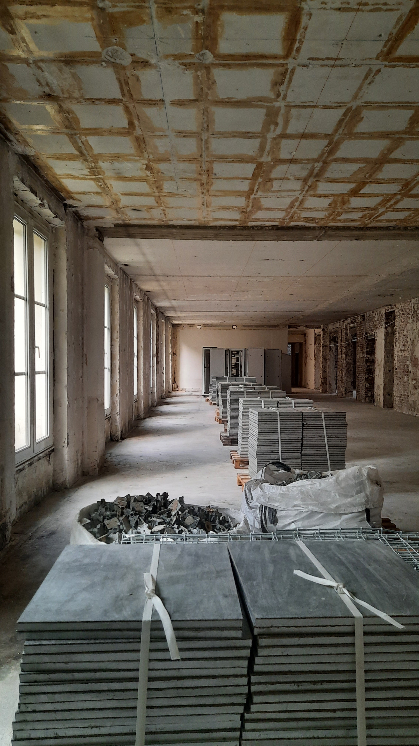 Nous avons constaté, à l'issue d'une première phase de curage du site, que celui ci renferme toujours plus de surprises architecturales et patrimoniales : les moulures cachées, les parquets à chevrons, les hauteurs sous charpente... Le suivi de ce chantier devra etre agile, et s'évertuera à répondre aux objectifs d'un projet de réhabilitation ambitieux, tout en s'adaptant à un existant redécouvert.